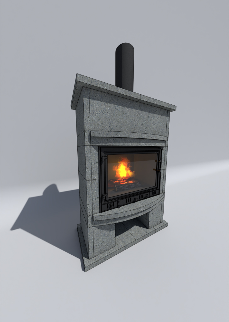 Этот вариант отделки из нашего собственного материала добавит строгости и монументальности вашему печному устройству. Используется для внешнего оформления камина или банной печи.