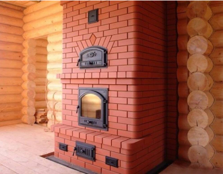 Этот вариант отделки из нашего собственного материала добавит строгости и монументальности вашему печному устройству. Используется для внешнего оформления камина или банной печи.